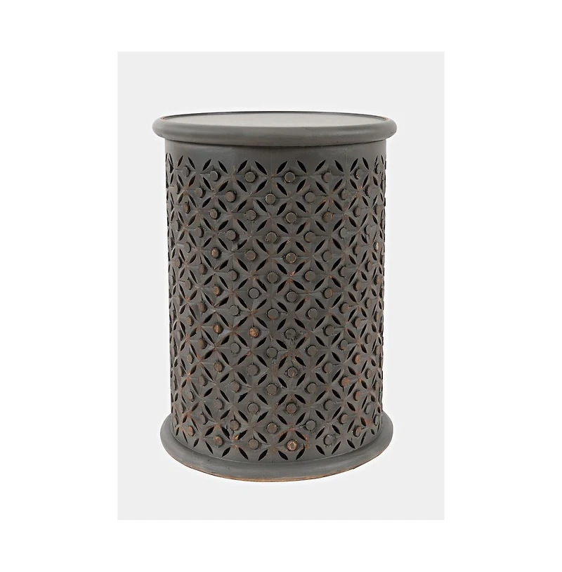 The unmistakable look of genuine hand carved wood shows the high level of craftsmanship that will makes every piece unique. This 17" Round Drum Table requires no assembly and is made from environmentally solid mango wood. The curved edge of the table is encompassed by a hand-carved detail pattern with a bold silhouette that creates visual depth. This accent table will look wonderful in the bedroom, living room, or any room that needs a little visual pop. The mango wood is sealed with a rich distressed finish to capture the character and beauty that makes each and every table unique.
