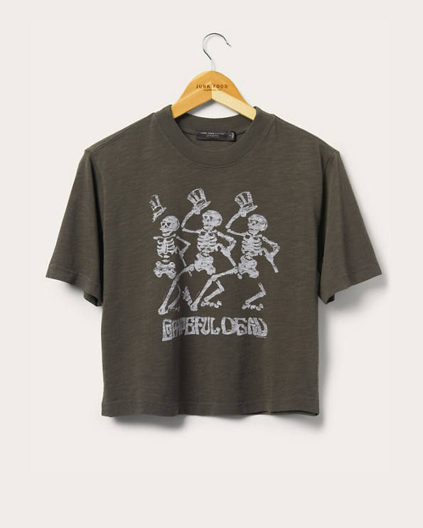 Junk Food Grateful Dead Dancing Skeletons Cropped Mock Neck Tee in Bloomington, MN