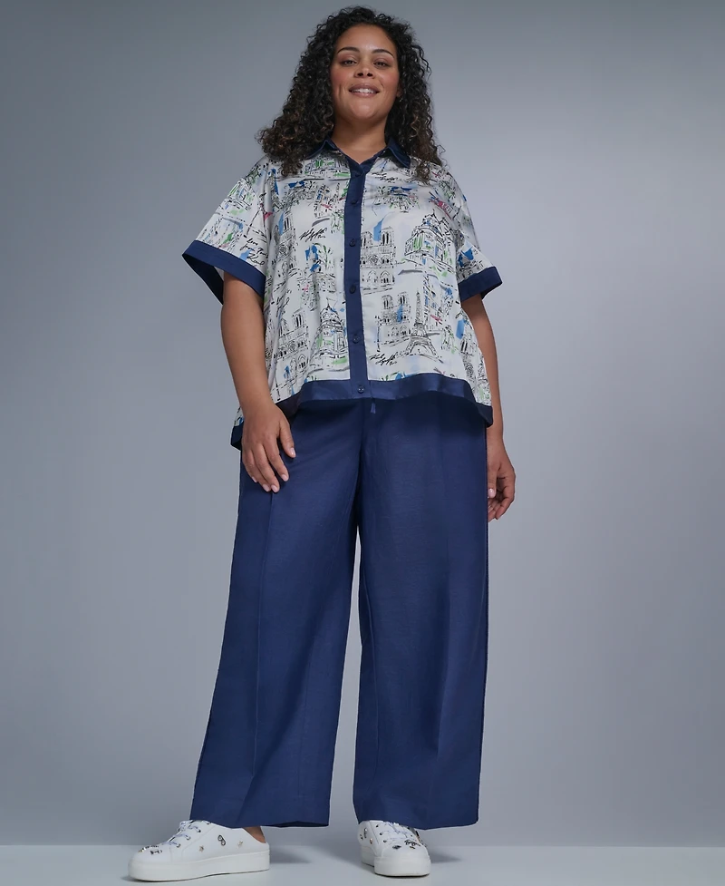 Karl Lagerfeld Paris Plus Printed Collared Camp Shirt