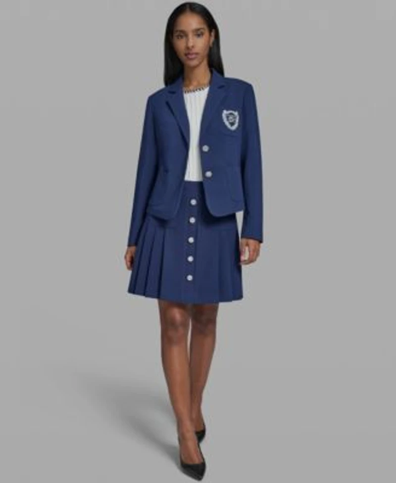 Karl Lagerfeld Paris Womens 3 Button Cropped Jacket Pleated SkirtKarl Lagerfeld Paris Womens 3 Button Cropped Jacket Pleated Skirt