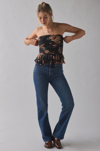 • - Kimchi Blue Mia mesh strapless tiered peplum top