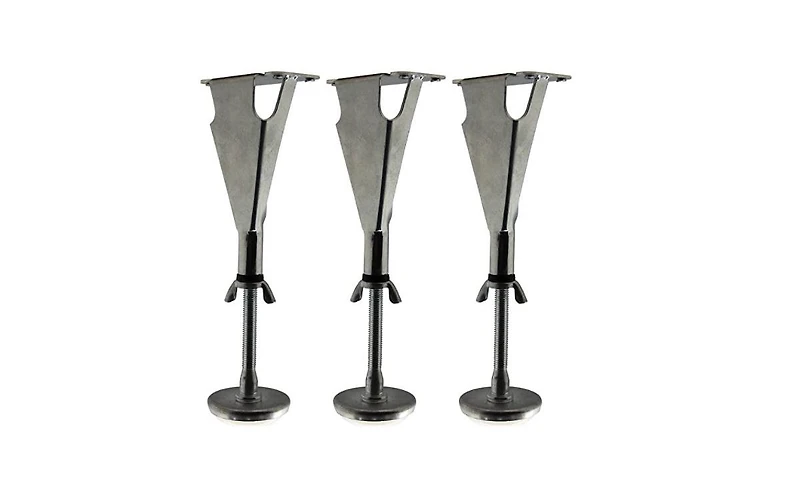 This set of 3 adjustable center support legs are designed to match different bed frame heights to protect your bed and mattress from damage or sagging. Simple and strong unibody construction allows you to add essential support to wooden slats, while a nylon bottom protects floor from being scratched. The metal leg and glide prove strong, durable, and rust resistant.