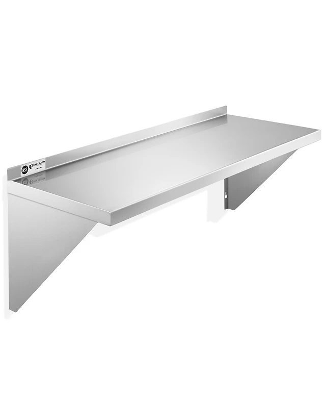 Kutler 12" x 24" Stainless Steel Shelf, Nsf Commercial Wall Mount Shelving w/ Backsplash, Floating Metal Mounted Shelves for Restaurant, Kit