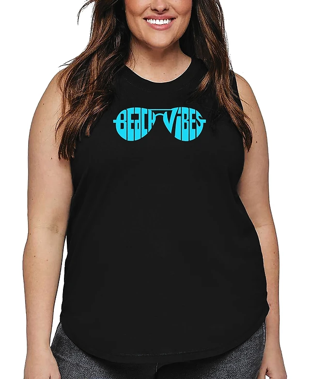 La Pop Art Women's Beach Vibes Premium Word Flowy Tank Top