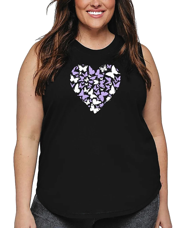 La Pop Art Plus Butterfly Heart Word Tank Top