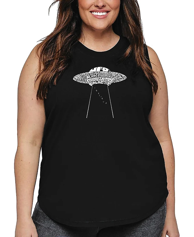 La Pop Art Plus Flying Saucer Ufo Word Tank Top