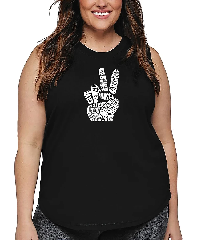La Pop Art Plus Peace Fingers Word Tank Top