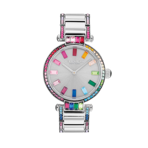 Ladies' Coach Cary Multi-Coloured Rainbow Crystal Accent Watch with Silver-Tone Dial (Model: 14503835)