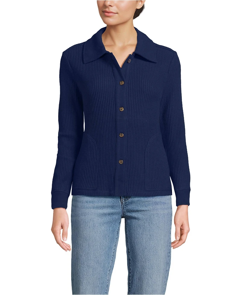 Lands' End Women's Long Sleeve Waffle Collared Shacket