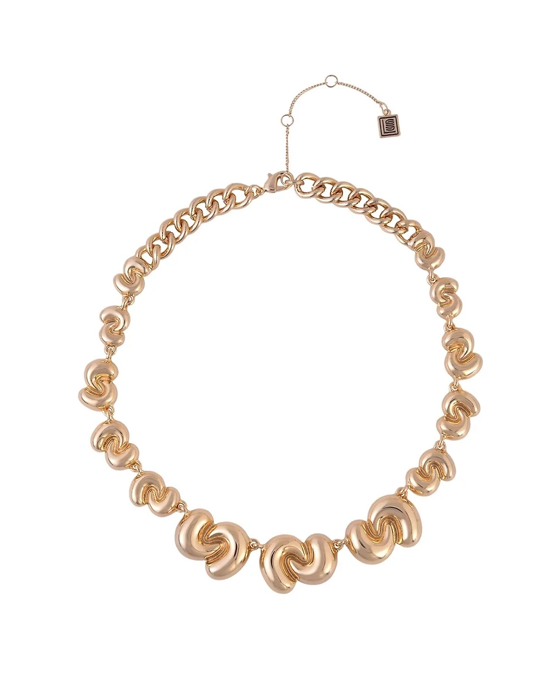 Elevate your outfit with this stunning gold-tone collar necklace from Laundry by Shelli Segal featuring knotted castings. With a bold, structured design and intricate knot details, this piece makes a statement whether layered or worn alone. Perfect for dressing up casual looks or adding polish to eveningwear, it s a versatile accessory that combines elegance with a modern edge.