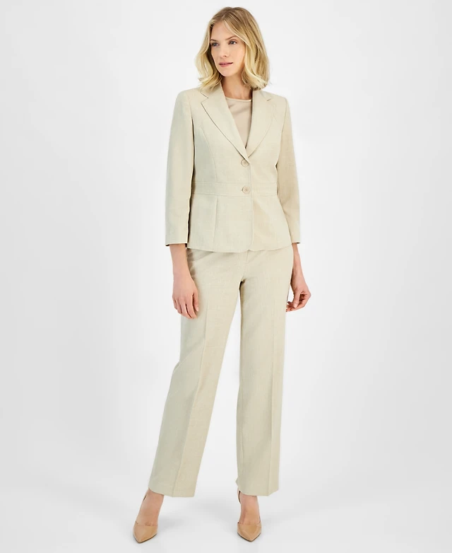 Le Suit Women's Two-Button Inset Jacket Extended-Tab Waist Pantsuit Set, Regular & Petite