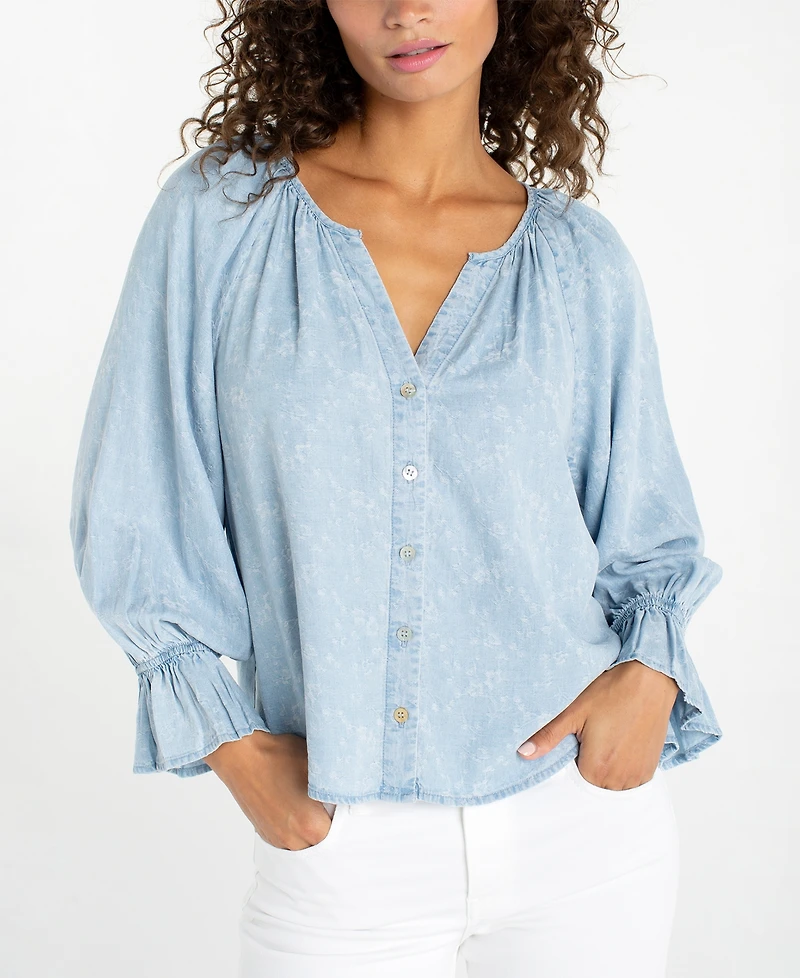 Liverpool Los Angeles Women's Button-Front Shirred Top