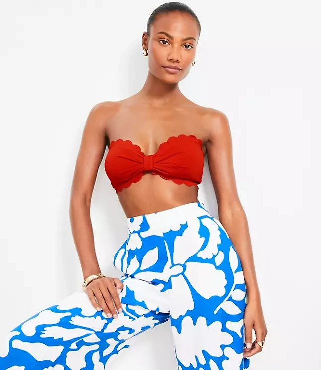LOFT Beach Floral Shirred Bandeau Bikini Top
