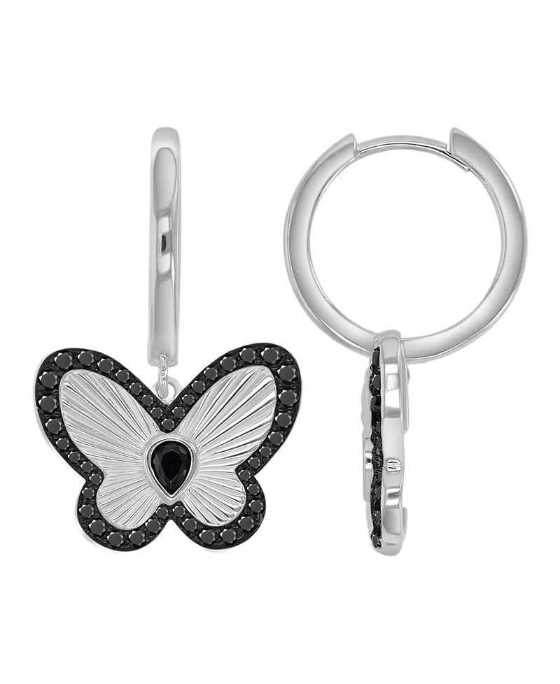 Macy's Black Spinel Butterfly Dangling Earrings in Black Rhodium Over Sterling Silver
