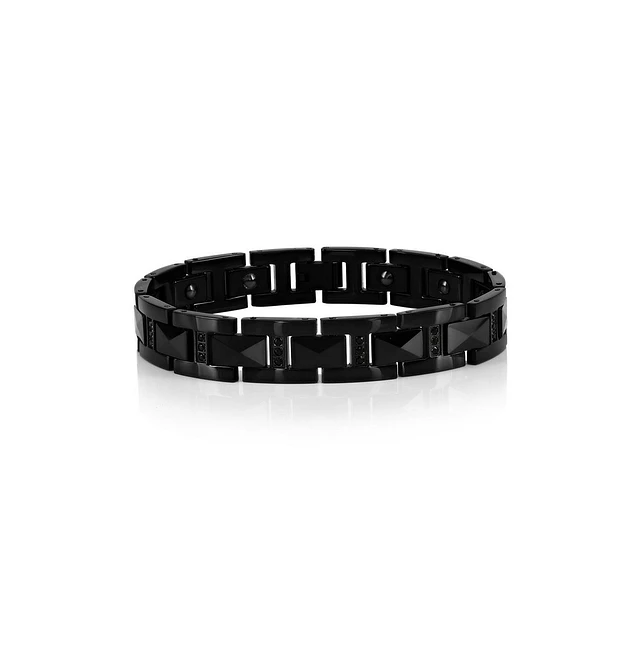 Magnetic Tungsten Link, Cz Bracelet - Black Plated