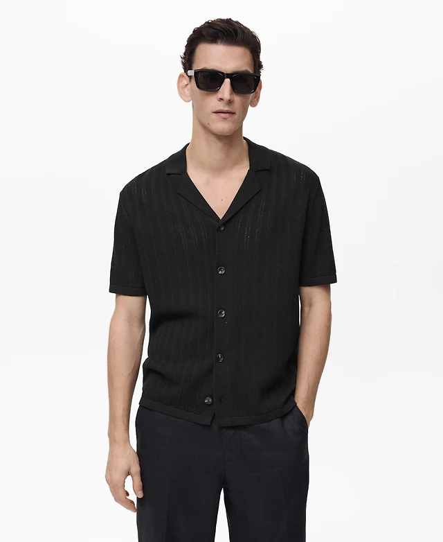 Mango Men's Openwork Cotton Knitted Polo Shirt