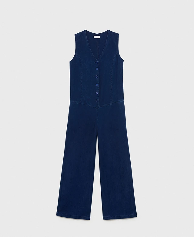Mango Women's Short-Sleeved Denim Jumpsuit
