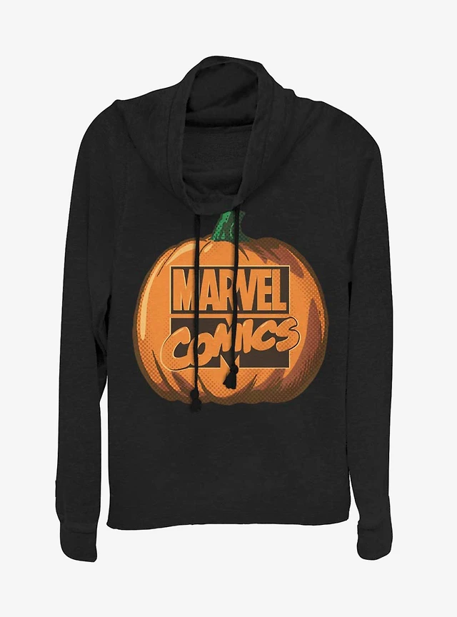 Marvel Logo Pumpkin Cowl Neck Long-Sleeve Girls Top