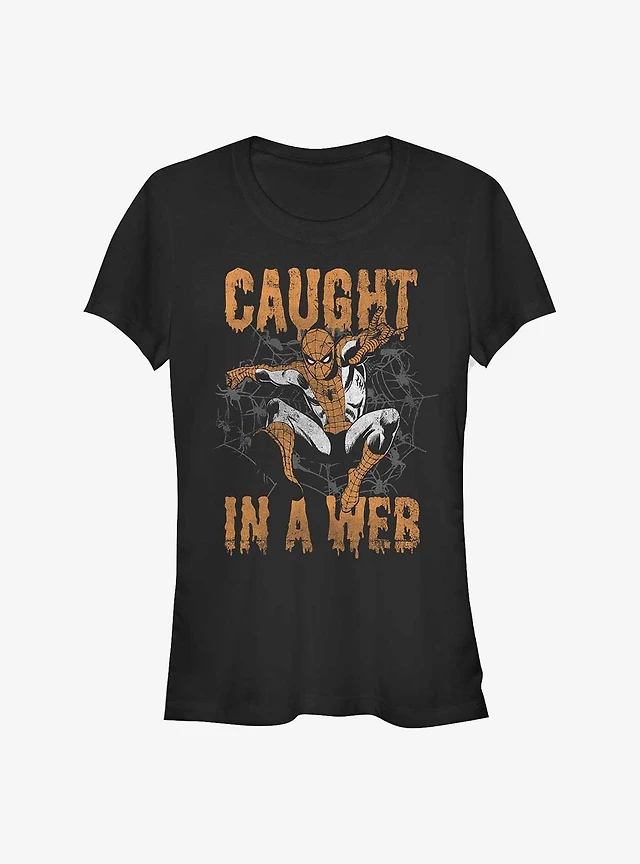 Marvel Spider-Man Caught In A Web Girls T-Shirt
