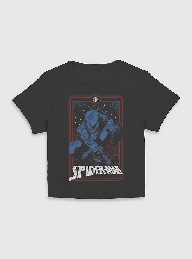 Marvel Spider-Man Galactic Tarot Mineral Wash Womens Crop T-Shirt