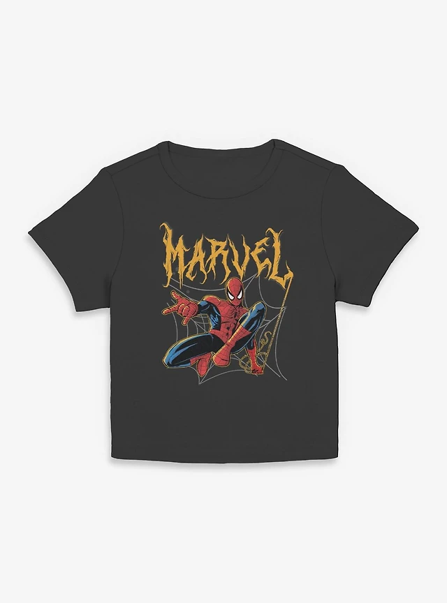 Marvel Spider-Man Spooky Spider Swing Mineral Wash Womens Crop T-Shirt