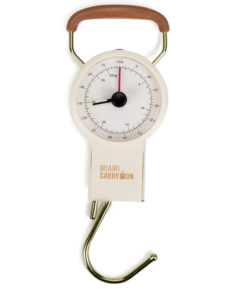 Introducing the luggage scale - simplified. We took every feature we thought would be helpful in a luggage scale, and implemented them all into this simple piece of engineering, to make your traveling as easy as possible.The mechanical scale features- High accuracy- Classy looks- Non-slip grip handle- A built-in tape measure- Weigh anything that hooks- Battery-free operationMiami CarryOnOne of North America's most recognized travel accessories brands, offering high-quality travel gear for the frequent flyers and explorers out there. Miami CarryOn offers an innovative and diverse product line that would make every trip a breeze. Committed to implementing the highest standards and best features in our products.