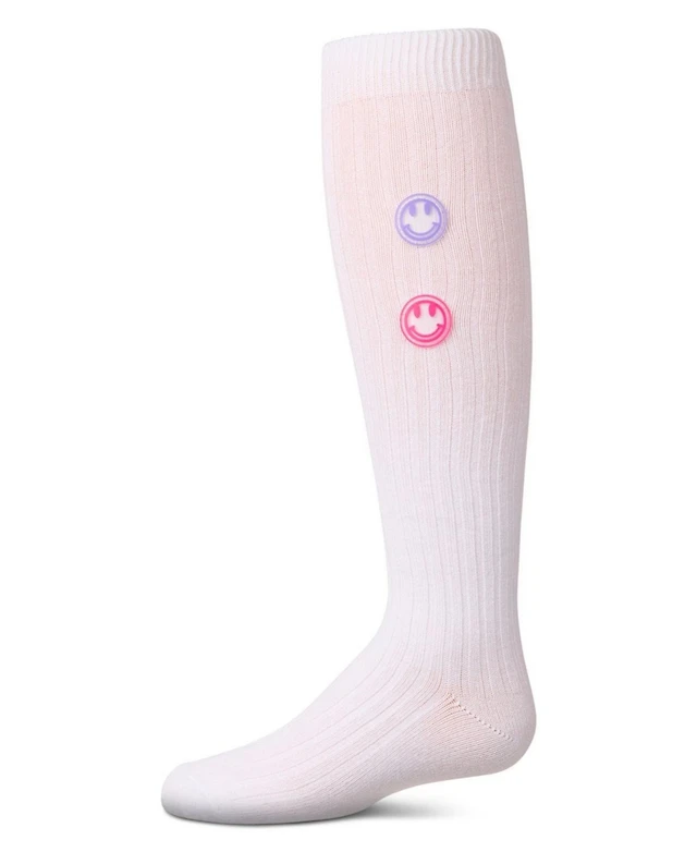 MeMoi Big Girls "Rubber Smiley Face" Cotton Rich Knee Sock
