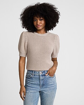 Merino-Blend Crew Neck Short Puff Sleeve Sweater in Bloomington, MN