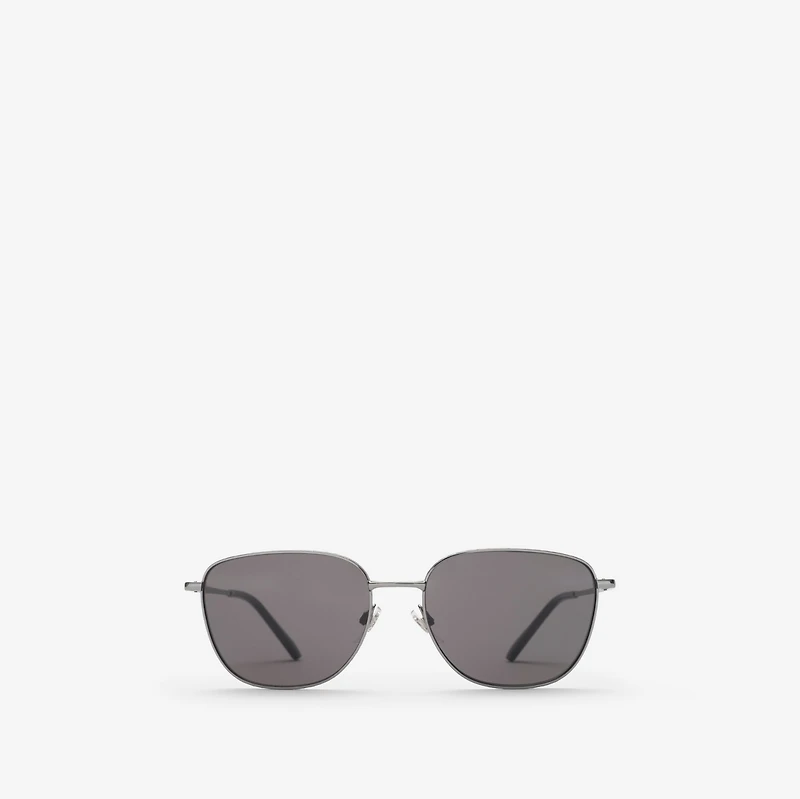 A pair of square-frame sunglasses made in Italy from metal with nylon temple tips. The slender silhouette is laser-engraved with our logo and the Burberry Check – a reference to the hardware of some of our most iconic bags.