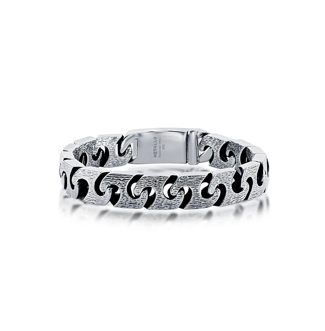 Metallo Mens Stainless Steel Textured Linked Bracelet