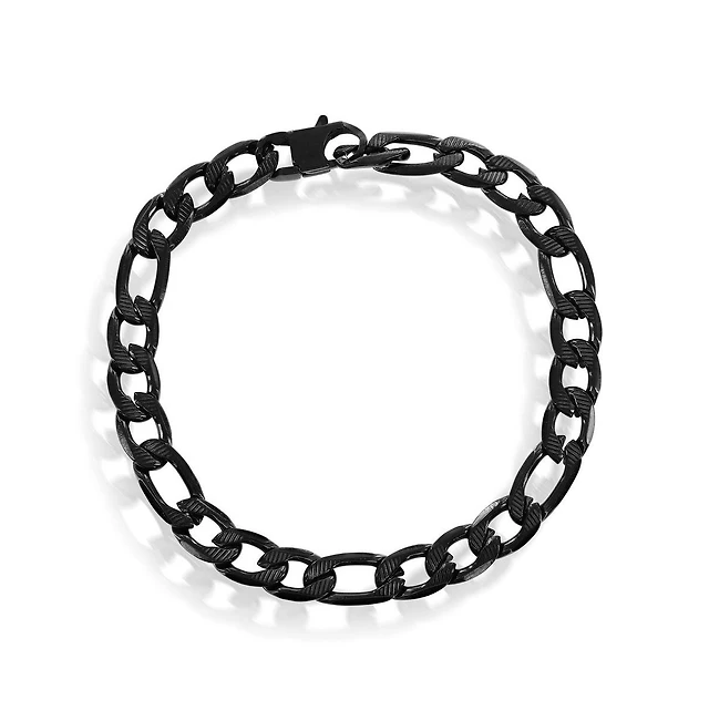 Metallo Stainless Steel 8mm Textured Figaro Chain Bracelet