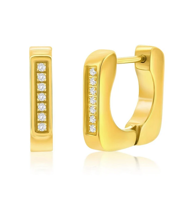 Cubic Zirconia Huggie Hoop Earrings in Two Tone 18k Gold Plate & Sterling Silver
