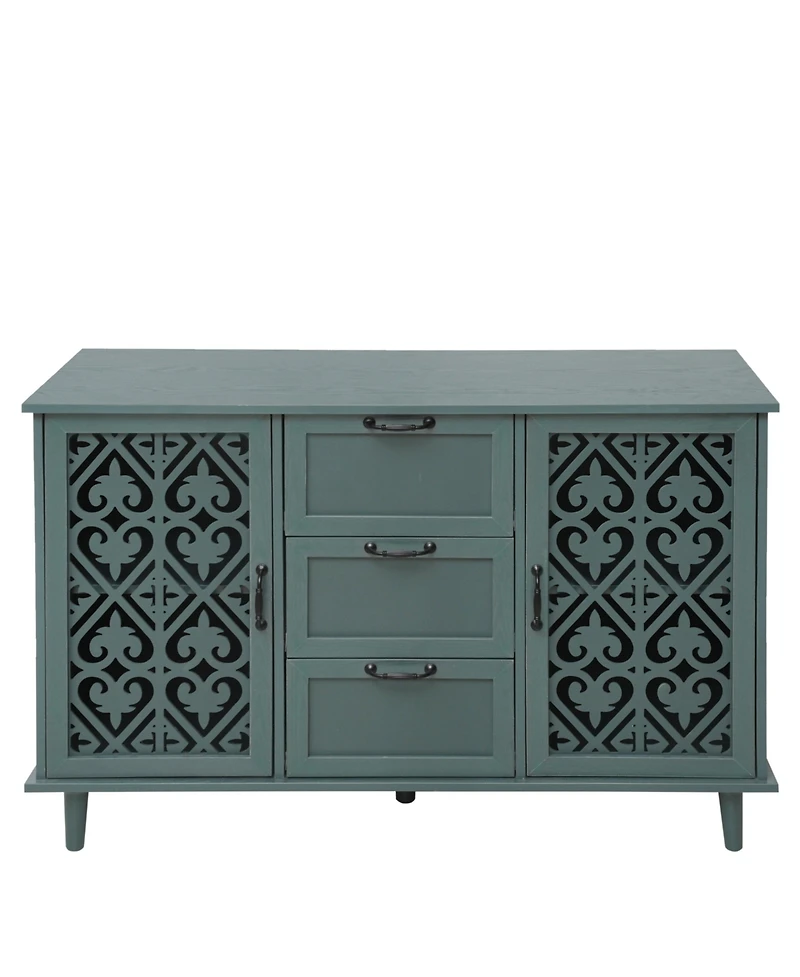 The cabinet door panel is carved with symmetrical pattern, beautiful shape, good air permeability