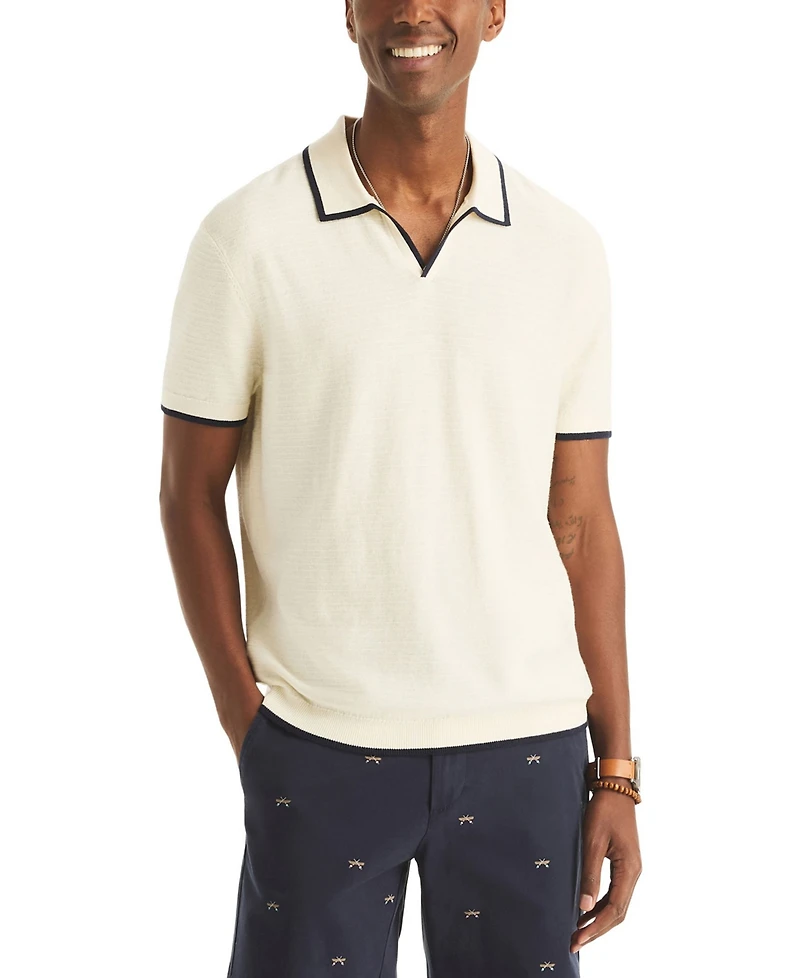 With its refined texture and signature details, this Nautica sweater polo shirt boasts a polished look with a tipped split neck and ribbed cuffs. The brand's iconic logo at the hem adds the perfect finishing touch.