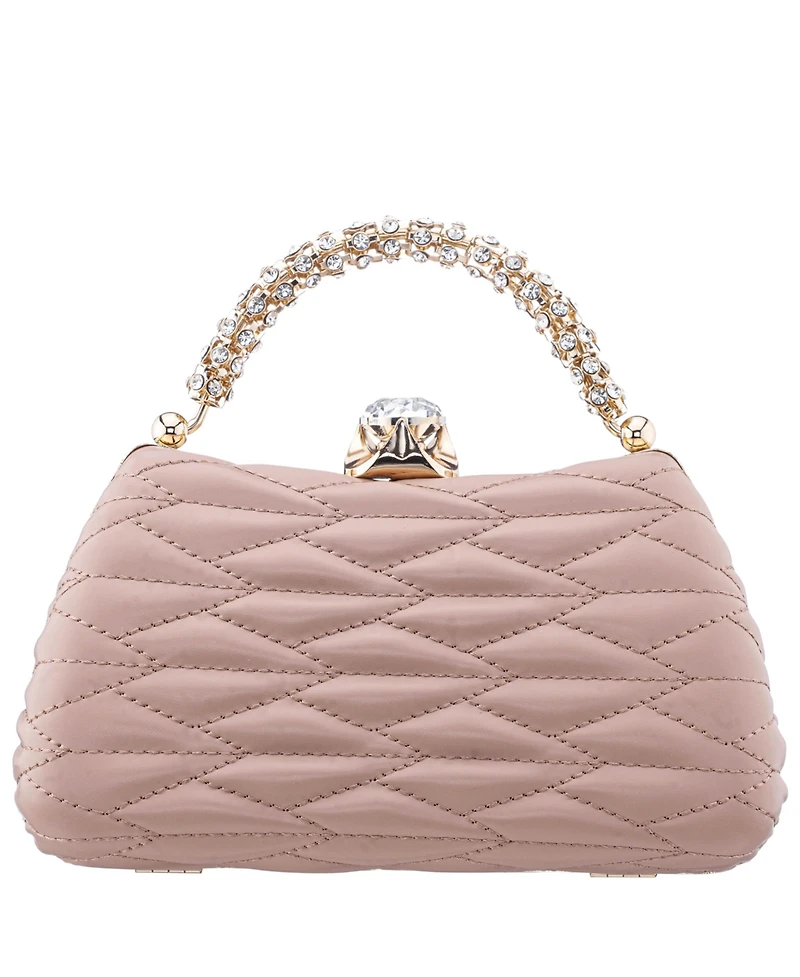 Jacquel by Nina is a quilted minaudiere that features a luxe crystal-accented handle that adds instant glamour to a structured silhouette.
