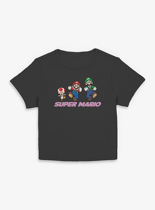 Nintendo Super Mario Group Fun Jump Youth Girls Boxy Crop T-Shirt
