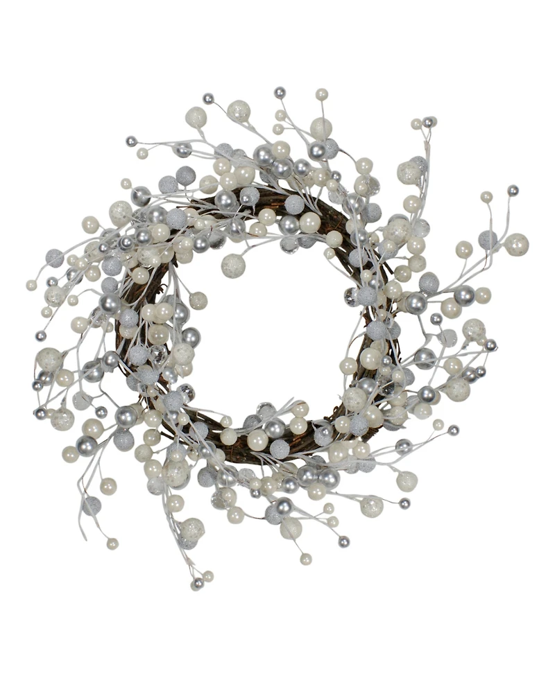 Northlight 20" Winter Wonderland Ivory and Silver Ball Ornaments on a Natural Vine Wrapped Wreath