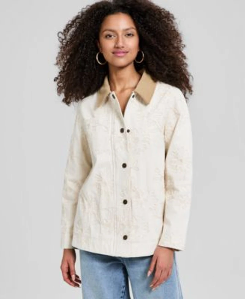 Now This Womens Cotton Embroidered Barn Jacket Macys Exclusive