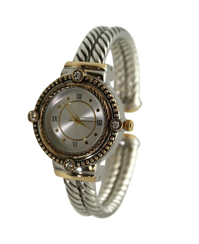 Olivia Pratt Two Tone Round Face Rhinestone Bezel Soft Bangle Women Watch