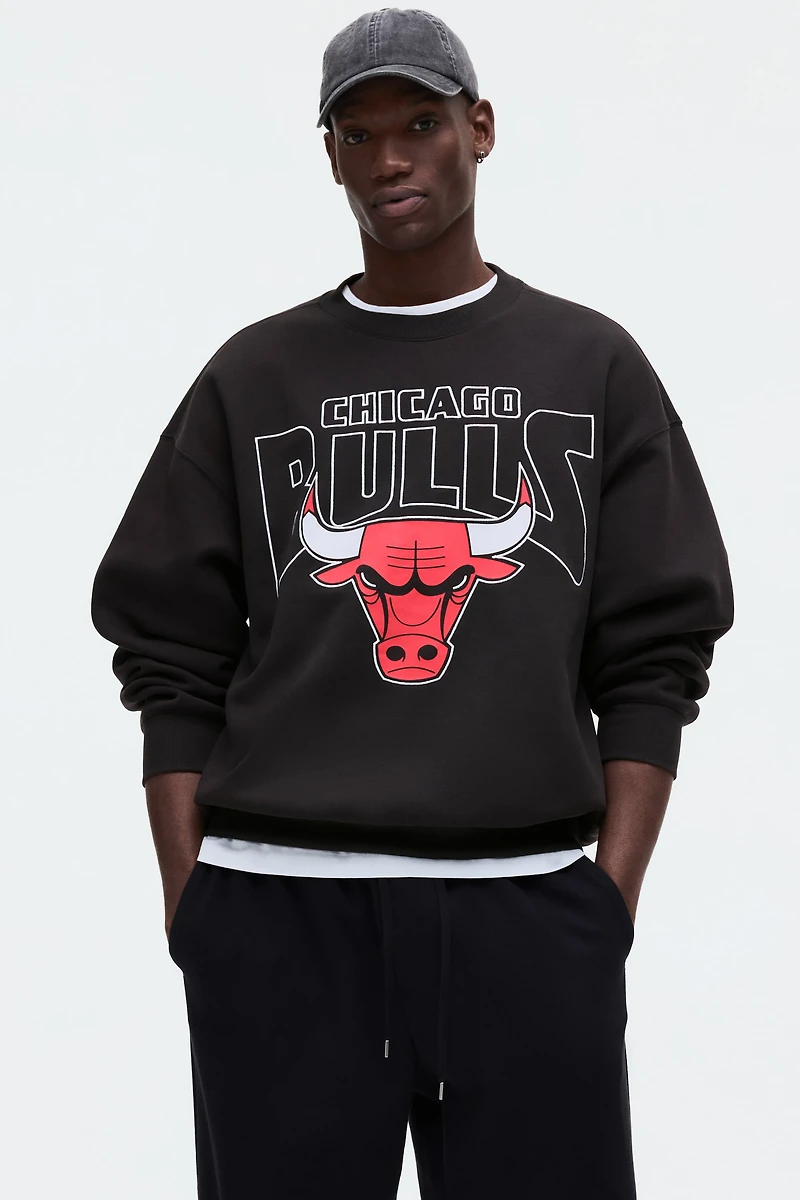 Oversized sweatshirt in medium-weight cotton-blend fabric with a printed motif and soft, brushed inside. Baggy, extra-loose silhouette. Crew neck and ribbing at neck, cuffs, and hem.