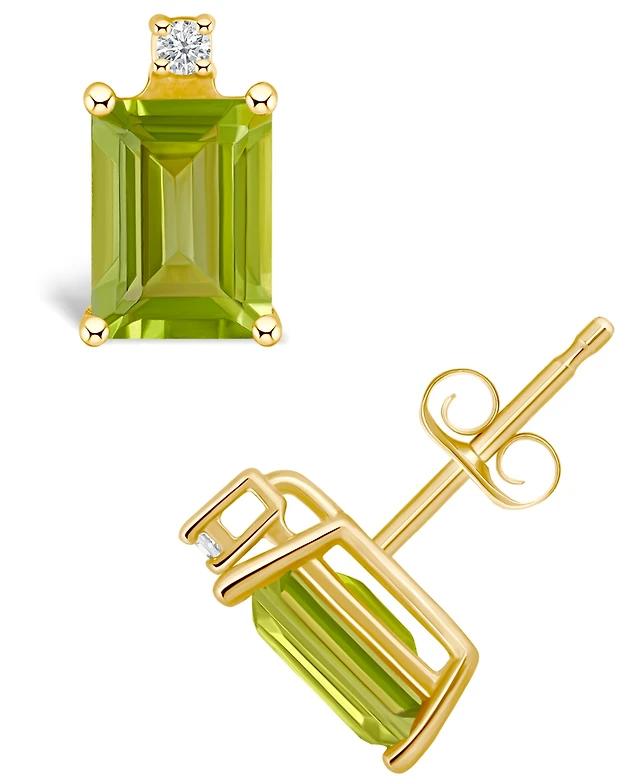 Peridot (5/8 ct. t.w.) and Diamond Accent Stud Earrings 14K Yellow Gold