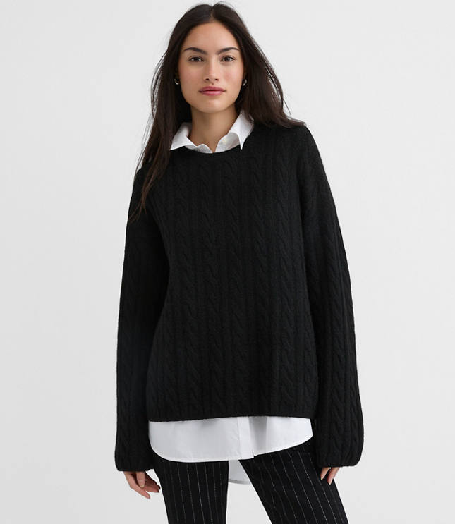 Styled with perfectly slouched wide sleeves, we love this modern refresh on a classic cable sweater. Crew neck Long sleeves, Bullet1: 23"long, Bullet2: Sweater weight Midweight, Imported:, Fit: Relaxed an easy shape that's just shy of loose, Length: Regular - hits below natural waist, Fabrication: 62% Acrylic 35 Polyester 3 Spandex, Garment Care: Machine Washable Loft Petite Heathered Wide Sleeve Cable Sweater Size Small Black Women's by Loft Size Petite - S Black Women's Crew, Neck Long Sleeve Pullover Sweaters Other 62% Acrylic 35% Polyester 3% Spandex Machine Washable Best Fall Sweaters