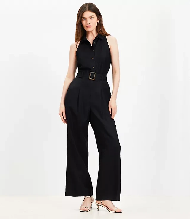 Petite Linen Blend Belted Jumpsuit