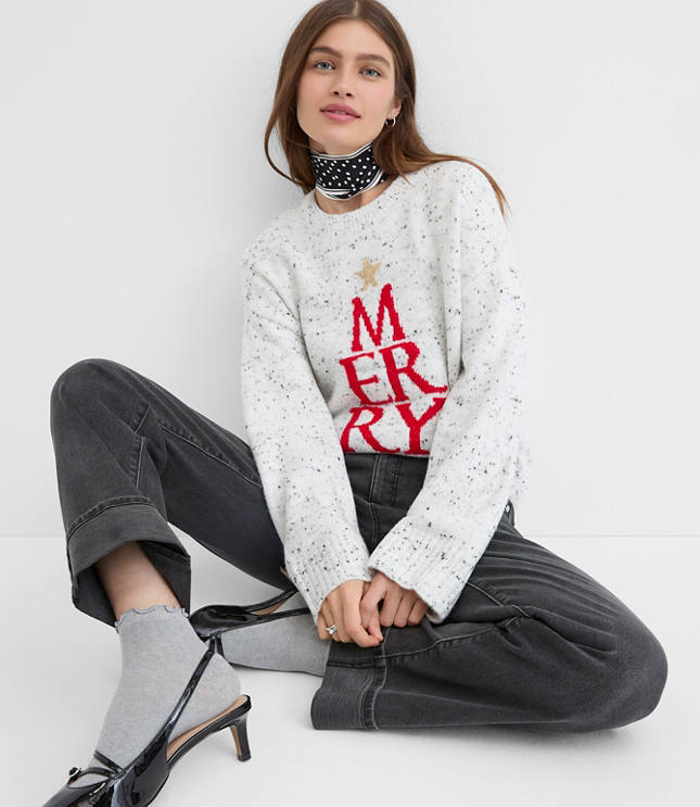Topped with a shimmery star, this extra soft knit sweater puts your style in the merriest mood. Crew neck Long sleeves, Bullet1: Sweater weight Midweight, Hit: Hits at hip, Imported:, Fit: Relaxed an easy shape that's just shy of loose, Length: 22 1/4"long, Fabrication: Body 66% Acrylic 31 Nylon 3 Other Fiber, Decoration: 59% Acrylic 36 Nylon 3 Wool 2 Other Fibers, Garment Care: Machine Washable Loft Petite Merry Mock Neck Sweater Size 2XS Speckled Grey Heather Women's by Loft Size Petite - 2XS Speckled Grey Heather Women's Crew, Neck Long Sleeve Pullover Sweaters Casual Body: 66% Acrylic 31% Nylon 3% Other Fiber Decoration: 59% Acrylic 36% Nylon 3% Wool 2% Other Fibers Machine Washable Best Fall Sweaters