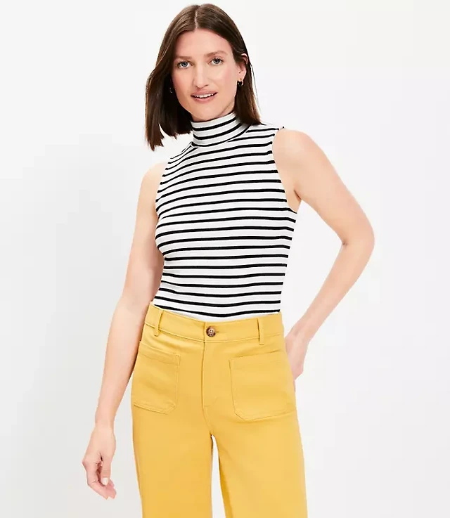 Petite Stripe Mock Neck Perfect Ribbed Tank Top