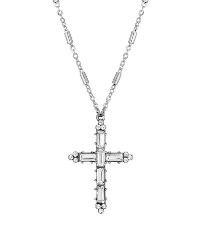 Pewter Crystal Cross Silver-Tone Chain Necklace