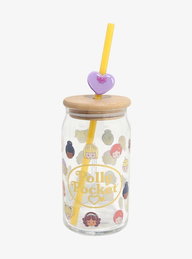 Polly Pocket Allover Print Glass Cup with Straw Charm — BoxLunch Exclusive