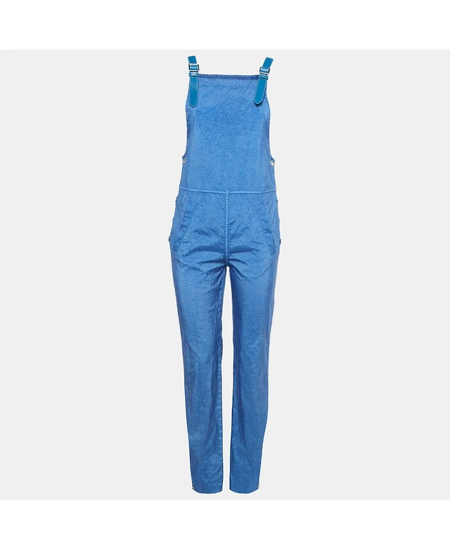 Pre-Owned Burberry Women's Warm Royal Blue Synthetic Leather Trim Dungarees