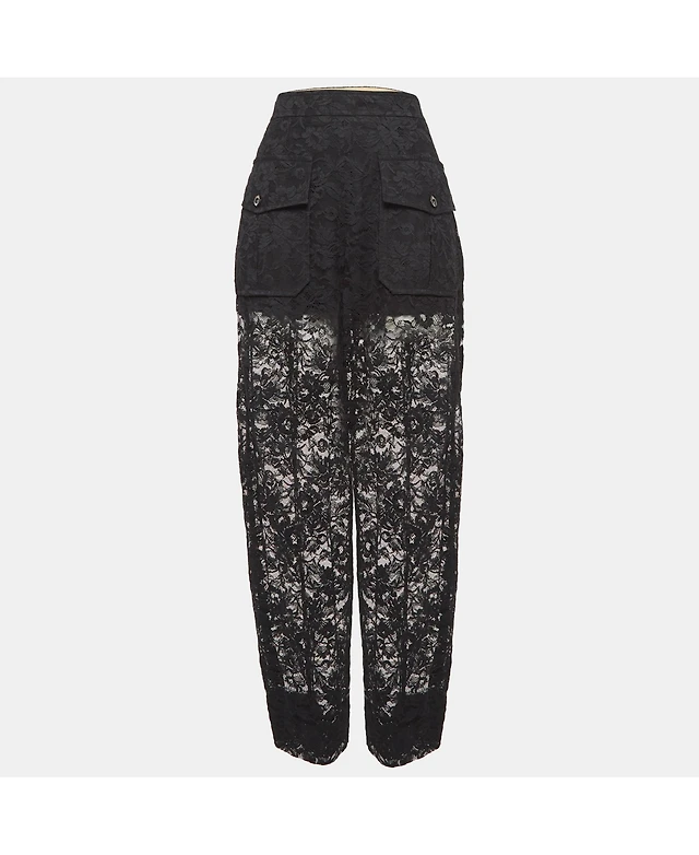 Pre-Owned Chloe Women's Black Floral Pattern Lace Sheer Trousers