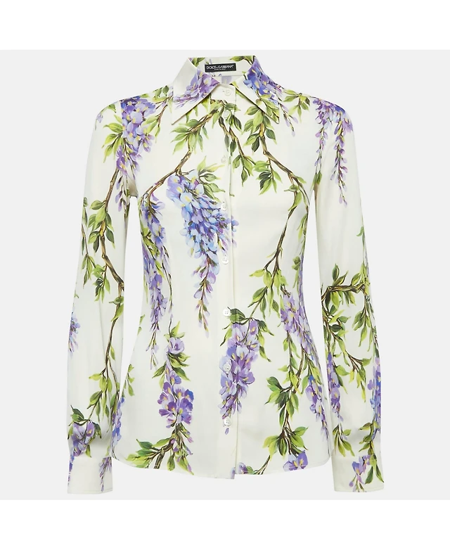 Pre-Owned Dolce & Gabbana Women's Floral Print Silk Long Sleeve Shirt